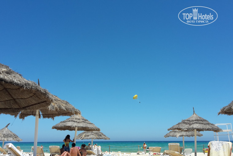 Сам пляж песчаный и море тоже.Говорили ,что в Суссе много меДуз, но это все фигня:стояли в море специальные сетки от них.Да,несколько раз вылавливали меДуз, но ловили их за буйками.