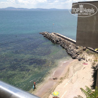 Расположение отеля довольно удачное, до ближайшего пляжа у отеля "При американца" около 5 мин, но он небольшой и из ракушечника, ходили на него раз, остальное время - на городские песчаные пляжи на Крайбережной набережной, тоже не особо далеко. До "центра" с пешеходной улицей и луна-парком около получаса ходьбы. У самого отеля пляж никакой, маленький кусок песка с ракушечником и плохим заходом.