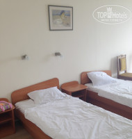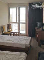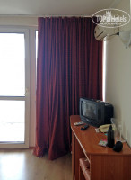 Наш номер sea view был на 5 этаже с видом на дикий пляж. В номере был кондиционер (из разговора с жильцами park view, их этим обделили), стенной шкаф с вешалками, две раздельные кровати, стол с встроенным холодильником в тумбочке, два стула и столик. Особого совка в интерьере я не увидела, хотя "усталость" мебели несколько присутствует. На балконе имелись два пластиковых стула. Но не было стола и сушилки, все боялась, как бы не сдуло наши купальники, а продвинутые соседи, видела, с собой прищепки привезли. Минус конкретно этого номера был в том, что прямо под нами располагалась крыша столовой, и начиная с пяти утра ее оккупировали горластые чайки. Никогда бы не подумала, что они способны издавать такие чудовищные вопли :-)
