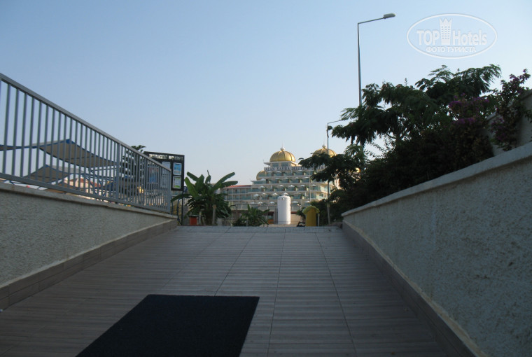 В отель приехали около пяти вечера. Заселили быстро, номер хороший. Были небольшие недостатки, но это некритично. Да, салфеток в номере нет, нет стульев и стола, нет мусорной корзины (только в туалете). Пользование сейфом платное, мы им не пользовались и ничего не пропало. Персонал отеля вежливый и приветливый. Питание нормальное, правда варёного мяса не было, варёная рыба была раз. Сыры в основном мягкие и солёные (как для меня, я ем мало соли), но их много было, и можно было выбрать несильно солёный. Из фруктов были сливы, яблоки зелёные и яблоки красные, нектарины(нектарины и сливы "дубовые", но полежав в номере день-два становились сочными и вкусными). Также были арбуз и дыня. Колбасу я обычно не ем, но куриная мне понравилась. Пила обычную или газированную воду, иногда добавляли сок лимона. Запаха у воды никакого не было, а к запахам я очень чувствительна. Рядом с магазином не рынки, а как торговые центры.В них одежда, обувь, сумки, чемоданы, сувениры, парфюмерия, сладости, фрукты. Хотела сухофрукты купить - их нет. Кстати о сладостях, щербет на фабрике сладостей (заезжали по пути в аэропорт) стоил 30$ за кг, а возле отеля же щербет (этой фабрики) стоил 15$.