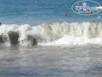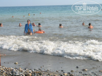 Пляж - крупная галька + песок. Заход в море тоже галька+песок. Глубина резким перепадом, т.е мелко идёт, а потом перепад и резко глубина увеличивается. Дно преимущественно галька. Есть полоска песка. Волны всегда, просто иногда больше, иногда меньше.