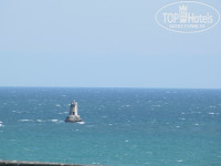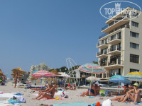 ПЛЯЖА у отеля нет, то есть он есть под старым корпусом, но считается неохраняемым. Однако, вода там всегда спокойная и чистая, с ребенком плавать можно без проблем. Мы ходили на пляжи "При Американеца" и немного дальше на песчаные - понравилось везде - волны, чистый песочек.