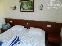 В номере всё стандартно: мебель путёвая, кровать правда с двумя односпальными матрасами, холодильничек, телевизор, душевая кабина-всё работала, сейф платный, взяли сразу.