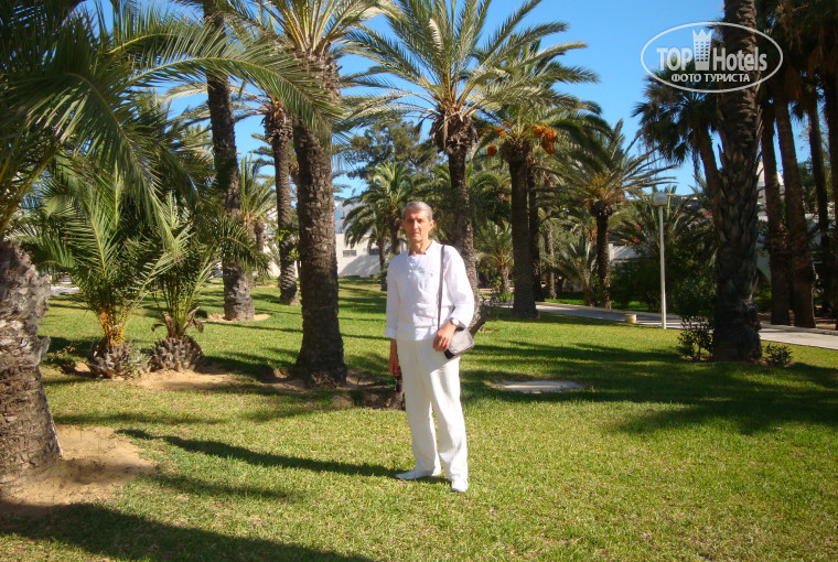 Отдыхали с супругой с 17 по 31июля 2016 г.Перелёт прошёл по расписанию.Прибыли утром и через короткое время получили номер 153 с видом на бассейн.Номер хороший,укомплектован всем необходимым,кроме сейфа и фена,что конечно ,неудобство.Сейф взяли под залог на рецепшен(20 динаров),фен был свой,взяли полотенца(карточки) под залог(20 динаров).Территория отеля вся в пальмах и красивая.К услугам отдыхающих два бассейна с барами.Пляж большой,песок.В начале не хватало лежаков и грибков,но потом принесли дополнительно лежаки,а к концу нашего отдыха поставили ещё грибки.На море постоянно небольшой прибой,глубина возле буйков.Есть атракционы,зарядка,боча,волейбол.Анимация не навязчивая.Пляж охраняется службой безопасности SSP.Большой привет нашему другу из SSP на пляже Мохамеду/В баре на пляже можно взять вино,пиво, соки-лимонады,кофе из автомата.Конечно нужно не забывать давать барменам чаевые 1динар.К питанию и сервису в ресторане претензий нет.Чистые скатерти и т.д. все на уровне.В баре вино сухое и напитки.Кофе только утром.Салфетки на ужин матерчатые.Рекомендую поглядеть в интернете,как ими пользоваться,а то многие не умеют( в том числе и иностранцы).Платных ресторанов нет.Ужин проходит в две смены,за вами закрепляется стол.В баре у бассейна и лобби -баре подают крепкие напитки.Если дадите чаевые,то вам нальют в стеклянную посуду,а так в пластмассовый стакан.В 22 часа начинается вечерняя программа,типа мисс отель и т.д.