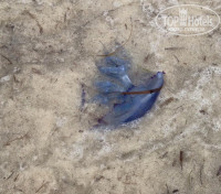 Пляж/море: море великолепно, в зависимости от погоды и тучек, оно разных цветов - бирюзовое, синее, сероватое, зеленое. Песочек как мука, очень приятный и не нагревается в полдень. Но для любителей поплавать на глубине будет проблема, мелко до буйков, а далее густо поросшие водоросли, которые нужно переплыть, чтобы попасть на глубину. Да и опасно плавать за буйками, катера снуют туда-сюда. С лежаками проблема только благодаря нашим соотечественникам, назанимают в 4 утра и потом их весь день нет на пляже. Приходишь на пляж к 9 утра, пол пляжа пустует, а лежаки все заняты полотенцами.. Также большой проблемой оказалось малое количество зонтиков на пляже, в итоге сын получил тепловой удар и сутки провалялся в номере.