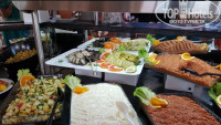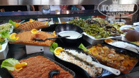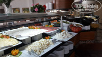 Еда: разнообразная и много. Без изысков (кальмаров, мидий и сыров с плесенью нет). Много салатов, много овощей. Мясо - 3-4 вида (обед, и ужин), рыба 2-3 вида в день. Фрукты: дыня, арбуз, персики, виноград, яблоки. Очень вкусные торты! Пиво отличное. Вино на любителя. Коктейли разнообразные и довольно таки вкусные.