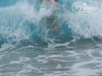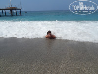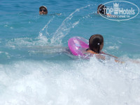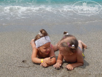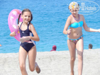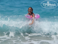 Штормило довольно прилично все дни нашего пребывания и все были в восторге, кроме маленькой Сони, которую удалось таки уговорить намочить ножки в море на шестой день только. Был куплен в магазине рядом с отелем надувной бассейн, в котором у Сони было свое личное море без волн. В 2016 году отдыхающих мало. Лежаков много, никто не занимает.