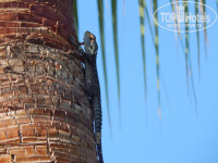 На пальмах, дорожках, газонах живут ящерицы. Иногда, бедолажки забегают в переход. Отлавливали их аккуратно и перемещали на травку. Цветов море на территории. У входа в супермаркет рядом с отелем растет и цветет плюмерия. На территории пляжа имеются небольшие горки для детей, качели и миниклуб, в котором занимаются с детками две девушки. (это в утреннее время). На основной территории тоже есть горки и качели, правда хотелось бы чуть побольше, чем есть.