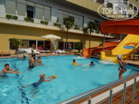Детская анимация понравилась, только девочки не знают русский. Ну да отель рассчитан на европейцев, так что ничего страшного. С детками они делали на пляже утром бусики, рисовали, разрисовывали лица, искали пиратские клады на берегу. А вечером танцевали и проводили различные конкурсы. Трехлетней дочке больше нравились пляски. Лезла на сцену танцевать, даже уже когда выгоняли. Теперь включает запись своих дискотек на телефоне и получает удовольствие. Анимация для взрослых была, в основном, представлена одним только Измаилом, который был и спортсменом и иогом и файерменом. На нем одном столько всего лежит. На одном из выступлений видели, как его качало от усталости. Битое стекло, на котором он стоит и лежит, действительно свежебитое и лицо у него непередаваемо, когда он стоит на нем босыми ногами с двумя мужиками на руках. Руководство отеля, выпишите ему премию! Была еще раз живая музыка, но было скучновато и обалденно танцевала танец живота приглашенная девушка. После 11 вечера никто не шумит. В отеле много семей с детками, поэтому спасибо за спокойные ночи.