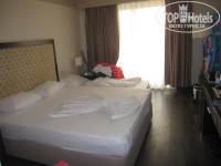 Отдыхали семьей с маленьким ребенком трех лет с 6 августа по 20 августа, плюс чуть позже нашего прибытия прилетели бабушки нашего ребенка) Прибыли в отель к 12 часам дня, заселили после обеда. Номер стандарт в главном корпусе, где ресепшн. Чистый, вполне уютный. Шампуни, мыло в наличии. По телевизору один русский канал - ТНТ. Но нас не напрягало, так как приехали купаться и развлекаться, а не тв смотреть. Вай фай платный. 9 евро в неделю, подключить можно только одно устройство. Это минус. В номере двухспальная кровать для нас с мужем, а для ребенка ничего не было. Попросили кровать. С третьего раза принесли МАНЕЖ с одеялком вместо матраса. На просьбы поменять на нормальную кровать проигнорировали 2 раза. На третий раз муж взял за руку отельного гида Оксану, и пошел на ресепшн требовать кровать. Принесли через пару часов. Спасибо. Когда прилетели наши бабушки, их заселили в экорум, хотя оплачен был стандарт. Нас причем уверяли, что это именно стандарт, но ни фига, мы то уже знаем. Мужу пришлось снова идти на ресепшн и за 10 долларов чая их переселили в главный корпус в номер с видом на море. Отельный гид на первой встрече очень увлекательно рассказывала про экскурсии, и настойчиво рекомендовала посетить ну хоть что-нибудь. Даже потом прозванивала в номера и узнавала, а не надумали ли мы посетить что-либо. Я выбрала Хамам за 65 долларов. С шоколадным обертыванием, точнее смазыванием. Ну впечатление так себе, в хамаме как-то грязновато. Но мы ездили с девчонками компанией, с позитивом, и в общем нас порадовало все. Но эта баня не стоит этих денег. сразу говорю. Далее.... Бассейны удобно расположены. около главного корпуса. детский и 2 взрослых. и один с горочками. еще один внутри здания крытый. питание около бассейна и на пляже организовано. так что ходить в главный ресторан обедать не обязательно, хотя там кормят вкуснее, а не фастфудом. Очень вкусное мороженое около бассейнов. Рекомендую. До пляжа надо пройтись. но не далеко. Спорт какой-никакой))) Отель заполнен, поэтому на пляже лежаки стоит поискать. Но мы всегда их находили, в разное время. Проблемы не было. Питание в отеле хорошее. Всегда есть выбор мяса, фруктов, овощей. Вкусные сладости. На завтрак правда всего один вид каши обычно был. И чаще всего манная. Персонал доброжелательный. Хамства не слышали. Особое спасибо за дружелюбие и открытость и позитив хочется сказать бармену в лобби баре СЕРЕГЕ))) Имя у него настоящее другое, но представляется как Серега))) Отличный парень. Грел молоко мне в 12 ночи, когда болело горло, переводил инструкцию лекарства с турецкого на русский. В общем, спасибо ему.Анимация раз на раз не приходится. Когда интересные выступления, а когда просто мультики детям включали вместо развлекательной взрослой программы. Мини-диско каждый день. Работает мини-клуб. Но мы туда не ходили-всегда днем купались. Отдельно хотелось бы рассказать про использование нами страховки. Ребенок заболел. Температура 39,2. Пошла к отельному врачу. Мне сказали, что они с нашей страховой компанией не сотрудничают. Позвонила сама в страховую уже в седьмом часу вечера. Девушка на русском спросила суть проблемы и координаты. Через полчаса за нами приехала машина и отвезла нас в ближайшую поликлинику к врачу. Осмотрели, прописали лекарства, свозили в аптеку и привезли в отель. В общем, лечением и быстротой довол