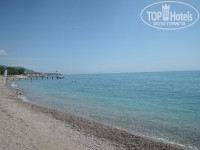Пляж с крупной галькой и сразу становится глубоко . Галька помельче справа , ближе к пляжному бару . На пляже один ряд зонтиков ( ближе к морю ) и два ряда тенов . Матрасы и лежаки в нормальном состоянии . Урн для мусора много . На пляже два пирса – на одном есть лежаки , но они почти всегда заняты . Вода в мае была освежающая +21-+23 , но нас такая устраивает . На пляже аниматоры предлагают игры , аквааэробику , для детей есть миниклуб . По пляжу ходят люди предлагающие фото ( отмороженный фотограф ни о чём ), массаж и хамам ( не был - не люблю ) , водные развлечения ( хвалили ) и Марина из магазина кожи на территории отеля . Советую поддаться её уговорам и съездить в Кемер в магазин кожи . Даже если вы ничего не купите , вас отвезут туда бесплатно и из магазина отвезут куда скажите . На транспорте в одну сторону сэкономите по любому . Если вы умеете хорошо торговаться , то кожу можно купить не дорого . Цены упали по сравнению с прошлыми годами значительно . Особенно советую магазин кожи напротив отеля Шервуд , что в 10 минутах хотьбы от Кимероса ( выходя из отеля направо в сторону Гейнюка) . Магазин в самом начале торговых рядов .Отличный продавец Женя –джан подберёт вам именно то что надо и цены адекватные , но ещё раз повторяю – ТОРГУЙТЕСЬ ДО УПОРА !!!!! Там целый квартал мелких магазинчиков со всем необходимым , несколько тур-агенств и лавки со сладостями . Также хочу посоветовать рядом с магазином кожи небольшой магазинчик с сувенирами – очень приятная женщина Жанна продаёт всё по реальным ценам и по желанию запакует всё аккуратно в коробку . Абсолютно не советую лавку со сладостями через два-три магазина – работают там девка киргизка и кудрявый парень . Пытаются обмануть , обсчитать , товар со следами вскрытия и плесенью . Кто то из отеля пожаловался что купил у них халву и в отеле решил попробовать , а там муравьи были . Понесли обратно , а им отмороженный ответ –МЫ ВАС ВИДИМ В ПЕРВЫЙ РАЗ ! Цены на всё примерно одинаковые , поэтому ещё раз повторяю – ТОРГУЙТЕСЬ ! Также советую съездить на рынок в Гейнюк в пятницу ( пешком далековато 30-40 минут ) . На такси 5 долларов , на долмуше вроде доллар . Разочаровал кемерский Waikiki – очень слабый выбор вещей … Да и качество не очень – купленные шорты после второй стирки просто выкинуть .