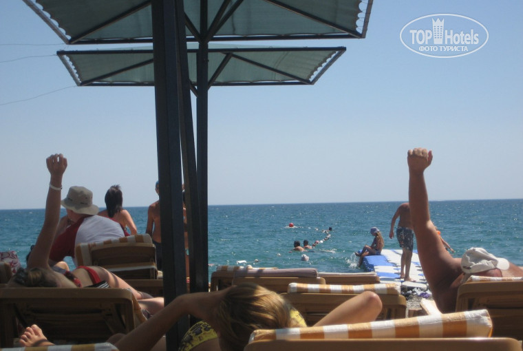Во-первых- не 1-я линия, до пляжа надо идти (перейти шоссе и маленькой тропинкой дойти до моря).
