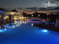 Здравствуйте!!! Пишу свой отзыв из отеля, отдыхаем уже неделю и можно сделать уже кое какие выводы))) отдыхаем семьёй с двумя детьми ( 12 лет и 1,10 мес) . Заехали в отель в 10:00 утра, заселили как и обещали ровно в 14:00))) устали конечно ждать ...тем более с малышом( ну ничего страшного, мы этого и ожидали! Делала запрос на комплименты ( по приезду и на день рождения) . Территория отеля красивая...основную часть территории занимают бассейны...детская площадка небольшая, нет качелей( Заселили нас в бунгало на первом этаже с видом на бассейн ...и конечно же ждали нас наши комплименты))) шампанское и тортик! Спасибо большое! В номере мебель новая и чистая! Чайный набор, конфетки, набор для душа...гели, шампуни, мыло, кондиционеры!) Понравилось расположение номера (со стороны входа бассейн, с балкона выход на полянку и тут же опять бассейн) моей старшей очень нравится...далеко бежать не нужно))) вышел из номера и в бассейн!) Хотя я не люблю бассейны...запах ...много людей ...но дети видимо все любят поплавать в бассейне !))) Прибираются в номере без претензий, меняют каждый день полотенца и даже очень часто меняют постельное белье! Что очень приятно!!! Кондиционер тихий! Согласна с предыдущим отзывом, что в ванне стоит вместо шторки стеклянная перегородка...неудобно мыть малыша в ванне ...ну мы тоже приспособились) зато нет луж на полу!) Еда здесь очень вкусная, но опять же это вопрос спорный!!! Кому то нужно 10 сортов сыра, мяса, рыбы и т.д. Нам все очень нравится...еда что то среднее между Турцией и Грецией) выбор не большой но все вкусно,хотя и неразнообразно!!! Я очень привередливо отношусь ко всему в связи с отдыхом с маленьким ребёнком!!! Скажу честно...если надумаете ехать в этот отель с малышом...малыша вы здесь не сможете полноценно накормить!!! Я для своего все взяла с собой в баночках и кашу тоже свою!!! Пару раз давала супики ресторанским...мой ребёнок оценил и судовольствием скушал, блинчики также очень вкусненькие , цветная капустка и брокколи! Сосиски считаю не детским питанием ...их здесь море так же как и картофель фри ( ну не детская это еда!!!! Чуть больше пюре нужно и паровых котлеток!!!! Обалденно вкусное мороженное - эскимо!!! Старшая лопает за обе щеки )))) Море не далеко...единственное смущает...это дорога между отелем и пляжем...уж довольно активное движение машин ...того и гляди придавят если не смотреть по сторонам !!!!))) надо быть внимательнее и аккуратнее !! Пляж маленький, для такого количества отелей вокруг него((( народу на пляже Ооочень много и такое ощущение , что все друг на друге сидят ))) Море необыкновенного бирюзово- прозрачного цвета!!! Песочек почти белоснежный!!! Пока на этом все!!! Если что, в конце отдыха ещё напишу свои ощущения по отелю!!!