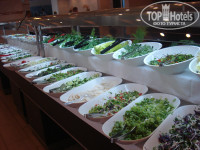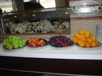 5. Питание . 5+.Фрукты: арбуз, дыня, яблоки, апельсины, виноград 2 видов, сливы, груши, персики. Мясо: курица (множество вариантов), коза, индюк, рыба каждый день (Хоть в каком виде), 2 раза были морепродукты ( кальмары и креветки). Гарнир: картофель (пюре, фри, тушеный, отваренный и обжаренный), несколько видов плова, макароны. На завтрак: жар.яйца, омлет, вафли, белые блинчики, много выпечки (булочки). Спиртное - подходят официанты (немецкий, английский, турецкий). Единственный минус - в ресторане многолюдно и шумно, напоминает муравейник. То же и лобби. Вывод - лучше приходит в 7.00 на завтрак и к 12.00 на обед, тогда спокойно и место искать не придется. Кроме ресторана, есть множество барок и снек-баров, где кроме напитков есть и закуски (салаты, бургеры, мороженое), на пляже тоже есть. Проблем с питьевой водой нет - в каждом баре стоят холодильники с водой и айраном. Платный только витамин бар - коктейль 3 евро. Есть а ля карт ресторан - нужно бранировать.
