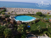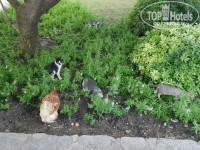 Территория замечательная! Есть, где прогуляться вечерком, подышать воздухом. Масса фруктовых деревьев, за которыми тащтельно ухаживают: мандарины, гранаты, бананы, финики, лаймы. Гигантские кактусы, алоэ. Настоящий сад! По территории гуляют кошки - общительные, но не приставучие и тихие, а также куры, петухи (утречком начинают кричать, но нас это даже забавляло). А рядом с нашим бунгало постоянно крутился фазан. Кроме того, можно прогуливаться в соседний отель Санрайз, с которым общая территория. Границы никакой нет, и не всегда поймешь, где начался другой отель. Однако территория Санрайза показалась не такой ухоженной. Зато именно у них находится аквапарк с горками. Время от времени по территории обоих отелей проезжает паровозик с вагончиками, можно проехать, осмотреть.