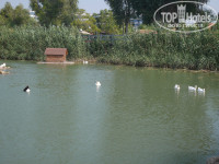 В правой части пляжа впадает в море небольшая река. Вода в ней конечно далека от чистоты, и неизвестно откуда она несет свои воды... Поэтому плескаться там не рекомендуется. Зато утки в ней водятся толпами.
