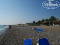 Пляж хороший. Песочек чистый, его стараются регулярно убирать, но сами туристы частенько гадят там же, где отдыхают, хотя под каждым зонтиком стоит чаша для мусора. Лежаков в принципе в достатке, но если вы приходите на пляж ближе к 11, то конечно придется поискать, потаскать лежаки из разных концов пляжа. А с утра их валом, но первую линию занимают уже к 8 часам. У бассейна не отдыхали, но видели, что там лежаки занимают с утра еще быстрее. Зато днем появляются свободные. Водичка в море замечательная, довольно чистая. Постоянно под тобой плавают косячки мелких рыбешек. Вход в воду - мелкая галька, хороший массаж для стопы. Глубина начинается довольно быстро и резко, поэтому для детей лучше плескаться в бассейне. Метрах в 30 от берега закреплен понтон, до которого можно плавать, а потом на нем загорать (главное не сгореть). На понтоне частенько можно встретить мелких крабиков.