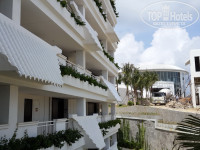 У отеля территории нет. Вернее, она есть, но там идёт активное строительство. Ночью тихо конечно, а днём может работать тяжёлая техника. Строительство идёт со стороны южного крыла. Его хорошо видно с террасы, на которую выходят двери номеров. Наша малышка спит днём, поэтому иногда стройка нам мешала. На данный момент построено двухэтажное здание с лобби и рестораном, и два крыла в 7 этажей: южное и северное. Между ними располагается бассен. Бассейн большой. По периметру более глубокий 1,3 метра, в центре детский 0,6 метра. В детском бассейне есть широкая и высокая горка и игровой комплекс с двумя горками. Детский и взрослый бассейны разделены территорией с лежаками и зонтиками. Полотенца у бассейна можно получить бесплатно. Так же там находится кафе Glass House. За бассейнами расположена небольшая площадь, которая оказалась фонтаном. Его струи бьют прямо из под ног. Днём я даже и не поняла, что это фонтан. Его только вечером изредка и ненадолго включали. Далее за территорией отеля находится озеро, а за озером лесистая гора. Так что вид из всех номеров (а все номера с видом на бассейн и на это озеро) довольно приятный. Море видно только с террас южного крыла, и то только между строениями.