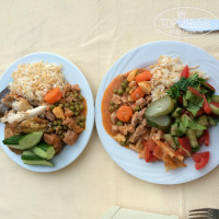 Выбор блюд ограниченный, но все приготовлено просто и по-домашнему, без диких специй и не пересолено. Каждый раз хотелось похвалить поваров, которые из ничего делали вкусно! На обед и ужин всегда вкусный местный рис, картофель и макароны, по 1 виду рыбы, мяса и курицы. Фрукты - 2 вида - арбуз и сливы. Пирожных - 5 видов, но почти все в сиропе. Официанты приятные, старались всегда.