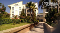 Территория отеля небольшая,но уютная.Есть 2больших бассейна.Один--релакс,как бы на балконе,отделён стеклянной стенкой,сквозь которую можно смотреть вниз на другой бассейн и всю территорию.Есть *лягушатник* с горкой-слоником для малышей.Есть горки для взрослых со своим небольшим бассейном.Вся остальная территория делится на *газон*,пляж и небольшую *рощицу* с пальмами и деревьями.Там везде стоят лежаки для загара и отдыха.Вдоль ограды стоят большие гамаки,где любят укачивать своих малышей мамочки.Места хватает всем и везде!Нет *борьбы* за лежаки--их много!Есть два белых пляжных *домика*,но они платные.Но здесь они не нужны--в тени деревьев намного приятнее отдыхать!