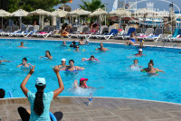 Где то в глубине души хотелось Wi-Fi в номере ,но особо не расстроило что он только по территории .Нам он нужен был не для работы и поэтому для нас лично это оказалось плюсом.Специально мы бы никогда не пошли на развлекательные вечера ,а так выходя после ужина ,мы занимали лежаки у бассейна любовались луной ,наслаждались журчанием воды в бассейне с голубой подсветкой и шастали в инете.Досиделись и услышали музыку ,стало интересно ,пошли посмотреть что же происходит.По вечерам аниматоры развлекали детишек дискотекой.Нам понравилось очень ,но позже оказалось что репертуар не меняется.После детских танцев ,для взрослых была танцевальная программа - танцы живота ,фейерверк .У меня ладошки болели и на следующий день - так хлопала от удовольствия.Хотя Харьковчан фейерверками не удивить ,но здесь все было особенно,волшебно.По вечерам стало нормой - после ужина дожидаться развлечений.Аниматоры - большие умнички !!!Заводили публики изо всех сил ,хотя у них за плечами был жаркий изнуряющий день.Они своей энергией и улыбками делали наш отдых сказочным.В 10 утра все аниматоры в форме ,проходили по пляжу и приветствовали отдыхающих на всех языках.Включалась песня "Good Morning" и это было своего рода сигналом к активному отдыху.На занятия аквааэробикой в большом бассейне ,с Алиной - я бежала со всех ног.Мне нравился именно ее азарт ,ее энергия - хотелось чтобы занятия не заканчивалось ! Алиночка - ты прелесть !!!Обидно было ,что маленький дождь помешал большому пенному пати на пляже.Это еще раз показывает насколько серьезно ко всему относятся - техника безопасности...Мы не любим большого шума и как раз именно такая анимация для нашего отдыха была в меру.