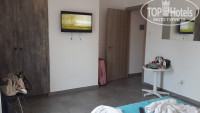 Номер отличный, есть мини кухня, плита, духовка, раковина, чайник, тостер, посуда, в комнате кровать, большой шкаф (большой минус нет тумбочек), в ванне душевая кабина, унитаз, есть балкон со столиком и стульчиками.