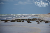 Пляж - лежащие водоросли на песке и катающийся трактор сгребающий их обратно в море где-то в стороне, а также какающие верблюды, лошади и ослик... Ослик тут работает по совместительству петуха. Будит утром и кричит когда ужинать пора. Это плюс.
