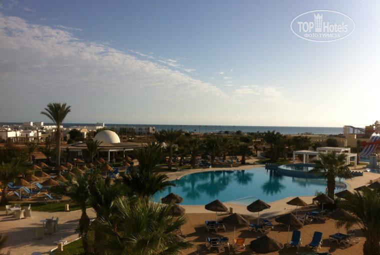 Отдыхали во многих странах, в том числе в Тунисе (в пятёрке). В этом отеле понравилось даже больше чем в той пятёрке, несмотря на то,что тот отель был просто дворец и территория намного больше. Думаю,что просто "сложились все пазлы": жили в прекрасном номере с видом на море (448), до моря совсем недалеко, шли всего несколько минут, погода благоприятствовала (хотя видели и ураган и испугались,что отдыху пришёл конец. Но с утра вновь солнышко и 30 градусов! Да,отель старенький, но все было чисто и аккуратно. Вообще, в отеле была атмосфера душевная и располагала к отдыху. Анимационная команда просто супер! Мы с мужем далеко не молодые люди,но с удовольствием участвовали почти во всех их затеях... В кафе и барах тоже отношение великолепное. Персонал спокойный и профессиональный-шеф-повар молодец! Поразило знание языков! Муж с ними и по-немецки и по-английски разговаривал (он преподаёт),а они ещё несколько языков знают (к сожалению, русский плоховато,но с удовольствием учат и не сомневаюсь, что овладеют и им. Питание разнообразное- мясо, рыба, овощи, фрукты, мороженое, выпечка-всё в достатке и мы с мужем оба поправились даже (хотя цели такой не ставили), просто невозможно отказаться от сладенького или чего-то вкусненького. Даже язык говяжий под соусом однажды приготовили и все его с удовольствием отведали (не в малом количестве). Бар в отеле работал отменно, обслуживали быстро и вежливо. Есть прекрасные горки! Бассейн великолепный! Очень много зависит от настроения человека...Мы приехали с целью отдохнуть и небольшие недостатки старались не замечать (к ним относятся собаки на пляже и не очень вкусная питьевая вода). А в общем, наш отдых удался и мы благодарим всех тех, кто помог сделать его таким замечательным! Спасибо огромное!!!