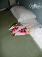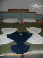 Номер. Номер маленький, но не критично. Телевизора нет, фена нет, холодильника нет. Розетки в номере: две в комнате (одна у зеркала, вторая на противоположной стене под потолком), одна в ванне. Матрацы на кроватях старые, жесткие. Подушки маленькие, узкие, пахнут плохо. Пляжных полотенец нет. Банные полотенца на пляж носить нельзя, взимается штраф 10 динар. Уборка номеров. Убирают плохо, не зависимо от того, оставляешь чаевые или нет. Полотенца затхлые. Бросала их утром на пол, чтобы поменяли при уборке номера, но получила тоже затхлые полотенца только на следующий день после уборки. В ванной был набор: 1 гель, 1 шампунь, 1 мыло. Добавляли за 10 дней 1 раз такой же набор. При заселении в номере было только 1 одеяло. Разбираться не стали, т.к. муж не мерзнет по ночам. Одеяло принесли только через 4 дня. Постельное белье меняли 1 раз. По утрам в ванной комнате был резкий, неприятный запах канализации.