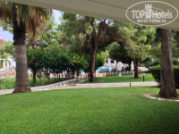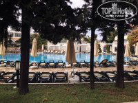 3. Территория симпатичная. Два бассейна под открытым небом - по обе стороны главного корпуса. На шезлонгах всегда можно устроиться. В принципе там обычно лежали немцы, которые до моря почему-то не добирались. Нас бассейны не очень привлекли, потому что вода холодная в них до ужаса. Возможно, такое только в сентябре-октябре, когда вечерами реально холодно и надо надевать кофты. Еще один бассейн внутри, рядом с тренажерным залом, но там вода тоже не подогревается и жуткий запах хлорки.