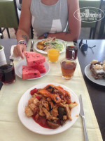 4. Еда вообще отличная! Ели-ели и наесться не могли :) Кому не хватает рыбы. тут она была каждый день - разных видов: то тунец, то что-то вроде окуня нашего, то скумбрия, то форель. Всякое мясо, гарниры, овощи тушеные, зелень всякая, соусы. Супы вот только странные - супы пюре, обычных, на бульоне, не было. Ну и без них неплохо было. Очень вкусный хлеб, который они сами пекут! Ещё огромный выбор сладостей, к которым руки сами тянутся, особенно на ужин. Фрукты: арбуз - всегда и много, дыня, виноград, апельсины-мандарины, персики-нектарины, сливы, яблоки, груши.