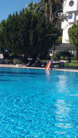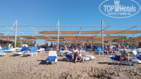 Пляж: песчанно-галечный, галька небольшой полосой при заходе в море, глубина начинается метра через 3, полого. Пляж тесный, шезлонги стоят плечо к плечу. Матрасы нужно брать самим в синей будочке с левой стороны пляжа, много рваных и грязных. На пляже есть бар: пиво, вода, кофе автомат, пицца, гамбургеры, паста по заказному меню и овощи, фрукты берете сами.