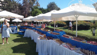 Между основным корпусом и выходом к морю находится: жардин снек (пицца, гамбургеры, паста по заказному меню и салат бар) работает с 10 до 16-30, жардин кафе (мороженное с 12 до 15 часов), бассейн, водные горки, фреш бар (платный).