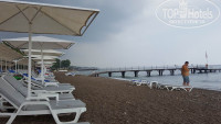 Пляж. Песок и галька. Сначала заходили в коралловых тапках, а потом "раскушали" пирс и пользовались только им. Ну, кроме, мелкого (1 год) -- мама с ним так и заходила с берега.