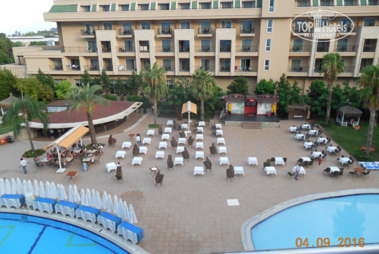 - Отель расположен в самом центре Кемера, через дорогу от небольшого сквера и пляжа. В непосредственной близости проходит вся ночная жизнь города (дискотеки и т.д.) Территория отеля ухоженная. Несколько неудобен переход от бассейна к аквапарку и амфитеатру, а также с отеля на пляж (подземный переход). Система кондиционирования в отеле на мой взгляд не работает. На этажах крайне спертый воздух, душно. Имеется 5 тихоходных и таких же душных лифта. Разницы в отношении к русскоговорящим или местным за все пребывание в отеле замечено не было.