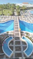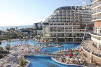 Впервые был в 5*, чисто европейский отель, контингент-90% немцы, русского языка никто не знает, повезло, знакомство с русско-говорящей немкой Светланой решило эту проблему, номера на хорошем уровне, все чисто, убирали каждый день, номер был куплен с видом на море-шикарный вид, питание отличное-все вкусно и разнообразно, территория небольшая, ухоженная, море чистое и теплое, заход лучше с права от причала, берег песчано-галечный, лучше купить закрытые коралловые тапки около 5-7 евро, чтобы не попадал песок и галька, в бассейне вода прохладнее, чем в море. Рядом с отелем находится маленькое кладбище, надеюсь он не отпугнет потенциальных клиентов. По вечерам в 21.30 была анимация-гимнасты, танцоры, весело, хорошо поставлено. Брать лучше евро, чем доллары, все цены в евро, но могут принять и доллары. Купил хороший матрас для плавания с сеткой по середине, одна немка с мужем и детьми, у которой кто-то украл матрас, увидев у меня такой же, а в магазине продаются все одинаковые, накинулась чтобы я ей отдал его, объяснить ей что это мой было сложно, на следующий день они уехали. Вай-фай хорошо работает, только с 19 до 22 зависает, видимо в это время все выходят в интернет. Единственный минус- гид не сообщил вовремя время отъезда и вылета, пришлось его вызванивать по телефону центрального офиса, что ему не понравилось. В общем и целом отличный отель, советую!