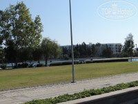 Территория не большая, но ухоженная, много зелени. Есть два бассена (очень холодные, особенно для детей), крытый бассейн и небольшой с горками.