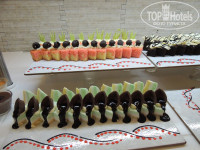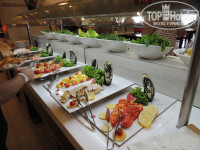 Питание отличное, есть все на любой вкус, один день был рыбный ( мидии, кальмары, креветки и тушеные и как холодные блюда, соленые разные рыбки), в обычные дни тоже есть всегда рыба типо скумбрии. Из фруктов яблоки, груши, бананы, апельсины, мандарины, слива. На завтрак пекут вафли, блинчики, яичница, разнообразные йогурты, салаты, сухие завтраки для детей, печенье и конечно очень много всяких вкусных булочек. Из алкогольных напитков в главном ресторане только пиво и сухое вино красное,белое, розовое, все в бутылках.