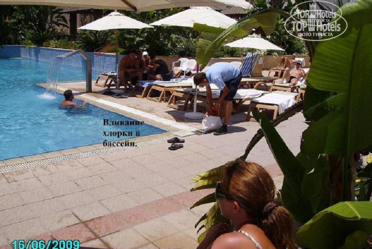 3. Дезинфекцию бассейна проводят на ваших глазах, видимо для того , чтобы вы видели заботу отеля о вашем здоровье. Однажды хлорку высыпали в бассейн во время проведения зарядки в бассейне у всех на глазах. Купаться после этого совсем не хотелось.