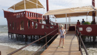 _Пляж. Хороший большой, песочек, но грязноватый. Повсюду валяются окурки. Даже в Египте у каждого лежака стояло по урне а тут нету, урны только вдоль дорожек, ну а основной массе отдыхающих видно лень вставать и идти куда то нести мусор вот и серут повсюду под себя закапывая окурки и стаканы в песок. Море классное, часто с волнами мелкими и большими. Нам это нравилось, особенно детям – скакать на них. Единственное что не понравилось это много водорослей прибиваемых волнами и медузы в воде. Хотя скажу так: сколько не пытался увидеть медуз - так и не увидел, а сына с дочкой они как то умудрились ужалить (сходили в прибрежный ресторан взяли дольки помидоров, приложили к ожогам и все прошло), нас с женой эта напасть обошла стороной (может мы просто толстокожие :)).