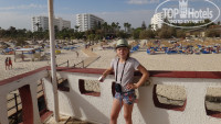 _Отель. Расположение не самое удачное, т.к. погулять негде, магазинов рядом нет, нужно ехать либо в Монастир либо в Сусс за покупками. Сам отель многоэтажный и состоит из 3-х корпусов. Постройка старая но внешне и из далека так не скажешь и выглядит еще достойно. Территория отеля довольно таки чистая, за этим постоянно следят. Озеленение отличное, посажено много цветов и деревьев, все цветет и благоухает. В отеле много лифтов, правда работают не все, иногда ждать приходилось долго своей очереди. На нулевом этаже по дороге в ресторан расположены небольшие местные магазинчики торгующие кожей, драгоценностями, игрушками, приправами, одеждой и принадлежностями для купания, раз в неделю приезжает дядечка со сладостями. Все необходимое в принципе можно купить тут, но имейте ввиду что цены тут чуток больше чем в магазинах в городах Сусс и Монастир. Все продавцы могут говорить на русском.