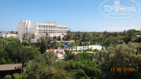 _По прибытии в отель на ресепшене нас сразу сонных проинструктировали на ломанном русском что да как, попросили заполнить анкету, выдали 2 ключа от двух номеров и карту для питания в ресторане, затем пожелав приятного отдыха, отправили заселяться. Наши чемоданы подхватил носильщик и услужливо попросил следовать за ним. Он исправно провел нас на место и внес все чемоданы. Так мы оказались в наших номерах 1321 и 1322 на 3-ем этаже 1-го корпуса (1321 номер заняли дети, а 1322 был наш). Зная о том что номера могут попасть проблемные сразу все проверили: в принципе все было сносно но в нашем номере оказался нерабочим кондиционер. Сказали нас это не устраивает и потребовали поменять номер. На ресепшене нам ответили что 5 мин и все сделаем. Правда, вызвали ремонтника, он что то покрутил, что то поменял в кондишине и он заработал. В общем, это был самый большой минус, все остальное было в норме. Далее зная что будет ночной прилет мы заранее позаботившись еще дома о бутербродах достали еду с чемоданов и чуток перекусили. Очень уставшие после перелета и дороги разделись и упали спать. Утром, проснувшись, стали осматриваться более придирчиво: оба номера объединены между собой внутренней дверью что встретилось нам на отдыхе в первый раз и оказалось очень даже удобно, везде кафельный пол внешне вроде чистый, номера небольшие, старые: в каждом по 2 кровати, по одной односпалке и по одной двуспалке с тумбочками. В каждом номере есть пара банкеток, стол с зеркалом, встроенный шкаф, центральный кондиционер ну и ванная комната в которой раковина с зеркалом, ванна и унитаз. Все старое и уставшее но рабочее. Вода в ванне и раковине уходила плохо, но уходила. Холодильников в номерах нет, сейфов нет, телевизоров нет и с розетками тоже беда, их в лучшем случае пара на всю комнату и то высоко на уровне лица (к чему такое непонятно), так что берите с собой обязательно тройники и удлинители. Но все работало, все загоралось и включалось, вода горячая и холодная без проблем в любое время. Кондиционер работал сносно, жарко не было. По приезду выдали одну бутылку воды, потом ее можно было брать самим в баре напротив ресепшена, минеральная вода есть с газом и без, какую попросишь такую и дадут. Балконы в наших комнатах были с видом на местный аквапарк и большой заброшенный отель и боковой вид на море (мы брали номера стандарт). В общем, все было сносно и не более. Тут надо еще отметить один факт замеченный в процессе проживания: двери в номер – их будто нет, слышимость настолько высокая что проходящие по коридору люди и говорящие что то в слух будто находились у нас в комнате.