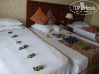 Номер достаточный по площади на троих, очень просто в нем, никаких изысков. Русскоязычные каналы не идут. Очень слабое освещение, в том числе в ванной комнате. Фен работал, мыло и шампунь, кондиционер для волос в ванне обновляли ежедневно. Холодильник водичку охлаждал. Кондиционер регулировался хорошо.