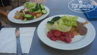 Завтраки скудные. На обед и ужин давали рыбу, курицу, овощи на гриле. Всегда был картофель и рис. Один раз давали крабов. Из зелени были огурцы, помидоры, перец, морковь и листья салата. Супы легкие.