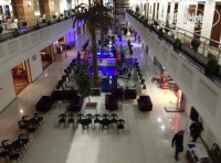 отель не новый , состоит из пары корпусов объединенных одной прозрачной крышей ,получается как- бы улица внутри здания