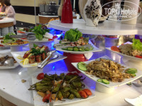 за еду можно поставить 6 балов из 5 ,вкусно было все (мне есть с чем сравнить) а рыба вообще бесподобна (я дома редко ем , там же ела ежедневно и по два раза в день)