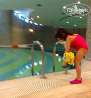 напротив в правом корпусе холл и вид на главный бассеин , имеется бар c барменом и автоматы с напитками ,в отдельной круглой пристройке с фасада рессепшн в этой части работает бесплатный вай-фай