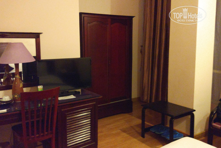 Отдыхаем во Вьетнаме, второй раз. Сразу оговорюсь, что сравнение с такой же тройкой. Белье чистое, полотенца так себе... Для ног нет, для лица салфетка 30x30. Бассейн... Я пока не поняла его прелести. Кто ранее был во Вьетнаме представляет как плотно тут ведутся постройки... А бассейн на земле, получается как в колодце. Тень, вода холодная, загара не жди... Про номер': ну не плохо, большой ( у нас с балконом), окна выходят на улицу, но тихо. Ну с улицы тихо, а кондиционер шумно. Телевизор с выходом usb!!! Завтрак: национален, более чем...Рис, супчик фо. Из фруктов бананы и драконий глаз.