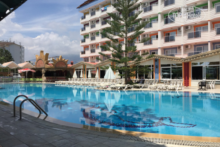 Отдыхали с мужем в июле 2016 года,в Турции были впервые,отель бюджетный,но сразу хочу сказать,что нам понравился!по первому требованию нам заменили номер(сперва нас заселили в номер,где были жёлтые пятна на кровати и в двери балконной трещина метра полтора) затем !заселили нас в четырёхместный номер с видом на море!в этом номере радовало все,кроме душа,т.к.сантехника протекала,в остальном все устроило!поскольку у хозяина отеля в собственности имеется ещё и пятизвёздочный соседний отель,то нам можно было пользоваться многими услугами 5*!питались мы в ресторане 5-ти звездочного отеля,бассейн,тренажёрный зал,бар,горки,анимация-все это тоже 5*!в целом отдых отличный,люди весёлые,еда вкусная,до хороших магазинов правда необходимо пройти прилично,но оно того стоит!пляж прямо через дорогу,к нему ведёт подземный переход,правда кругом галька,что не удобно,поэтому если вы собираетесь туда с детками,то Южный регион Аланья не совсем вам подойдёт!