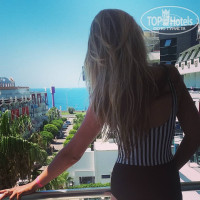 Приехали в отель около 13 .30 . Сразу бросился в глаза шикарный интерьер холла . Все как на фотографиях : красиво, стильно , уютно . Еще там всегда было свежо и был специфический вкусный запах . Сразу мы познакомились с милыми и дружелюбными девушками Дианой и Еленой . Заполнили анкеты, нам надели браслеты и отправили на обед . Несмотря на то , что в отеле было много людей , еды и фруктов нам хватило , в очереди не стояли . После обеда нам вручили ключ от номера 5262 в 5 корпусе . Правда в нем мы пожили пару дней, а затем переехали в 1 корпус , в номер 1516 на пятом этаже , с видом на море . Люди хоть и пишут, что далеко ходить до первого корпуса с других корпусов, но уверяю вас, даже в пятом корпусе нас все устраивало, хоть там и не было зеркала в полный рост, что немаловажно для девушек . В нашем новом номере 1516 все было превосходно : начиная от интерьера и дизайна комнаты, шикарным видом на море , заканчивая всеми принадлежностями и уборкой номера. В холодильнике была питьевая вода. Уборка в номере была ежедневной : меняли полотенца, красиво заправляли наши две большие кровати , мыли пол . Зеркало было огромнейшее , почти на всю стену . Телевизор работал исправно, но его мы включали только для того, чтобы послушать музыку и потанцевать, когда собирались на пляж и на ужин . Каналов было очень много, даже русские музыкальные .